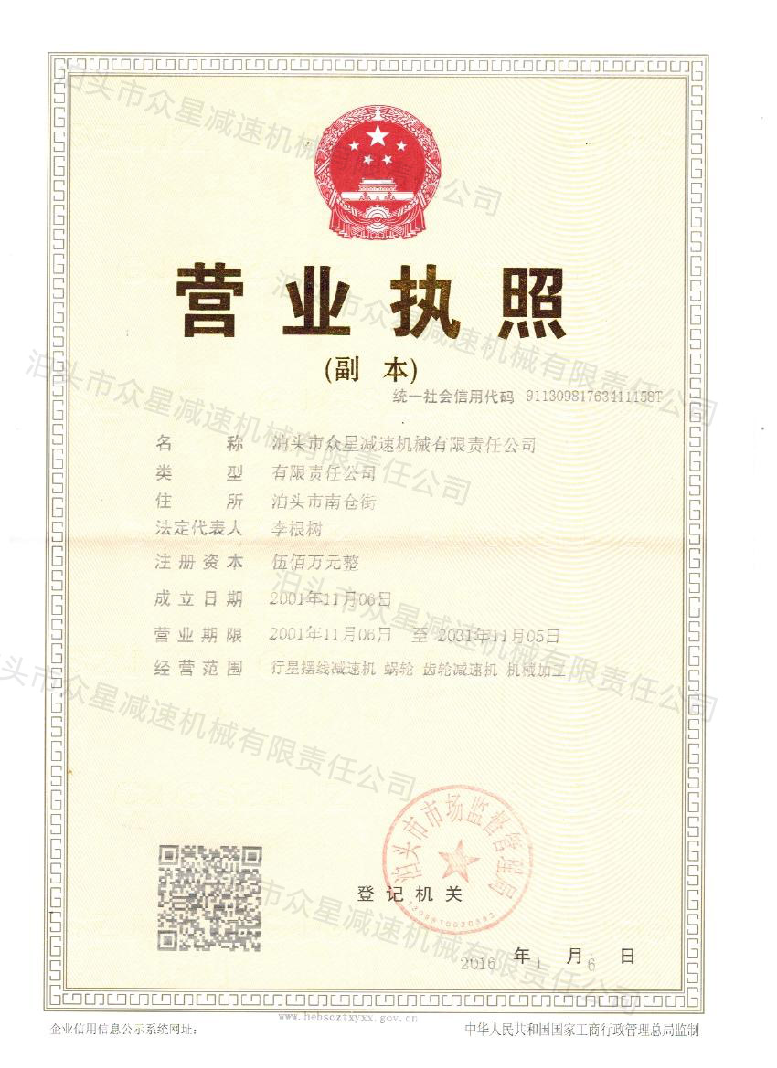 泊頭市眾星減速機(jī)械有限責(zé)任公司